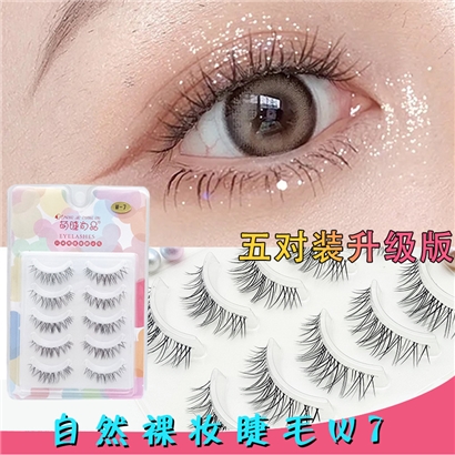 萌睫尚品五对磨尖假睫毛自然仿真女透明梗裸妆交叉裸妆眼睫毛w-7